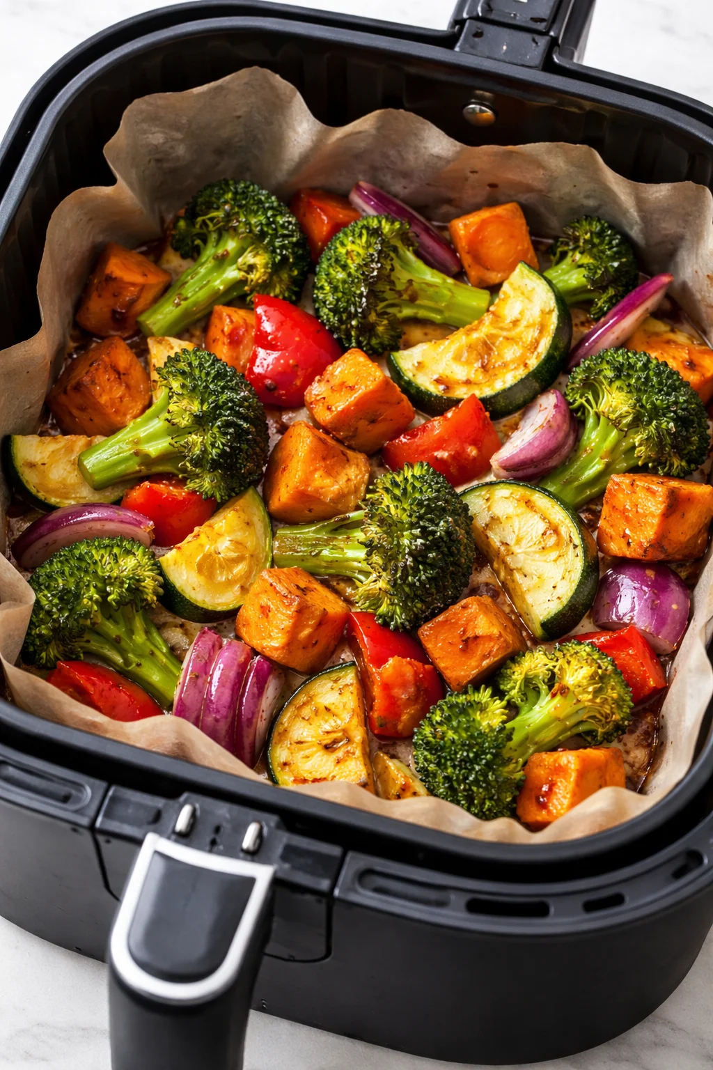 Lazy tip: use parchment paper (or air fryer liners made for your basket) to make it easier to clean.