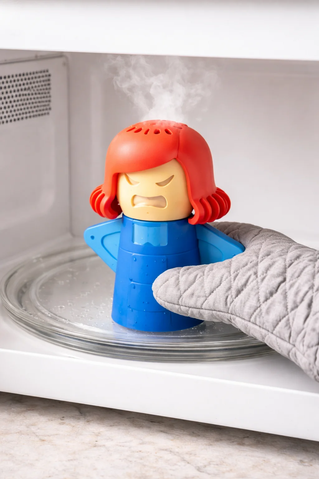 If your microwave is a sauce splatter museum, the angry mom microwave cleaner style steam cleaner is a fun kitchen gadget that also works. Add water and vinegar, microwave it, then wipe. It is multipurpose kitchen energy: fewer chemicals, less scrubbing, faster results.